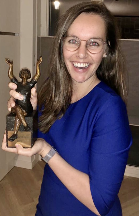 Janine Vos, CHRO and Managing Board Member of the Rabobank, became Topvrouw of 2021. Imke Gommans, Project Manager at ProRail, won the Young Talent Award. She received my sculpture from jury chairman Eeke Olijve van den Brink, who won the award in 2016. This year 21 young women participated to the election.